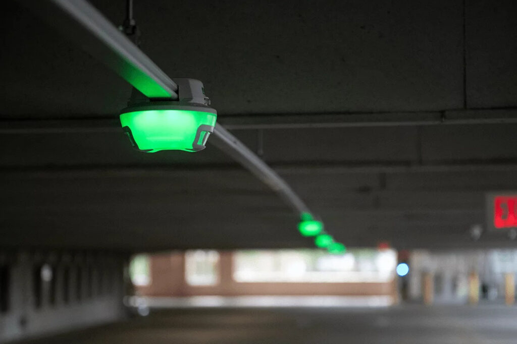 Parking bay guidance with LED and camera for plate number recognition for car finding feature.